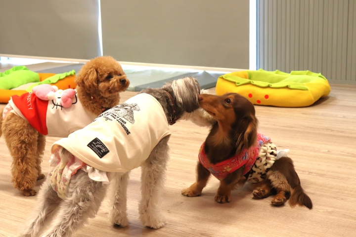 他のワンちゃんに対して過度に反応や興奮をするのではなく、平常心でいられる力を身につけることが何より大切だと考えております。