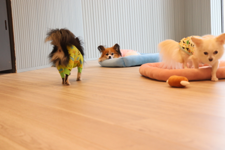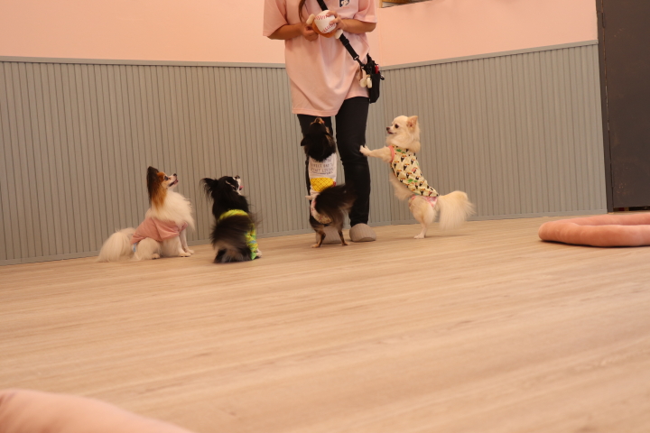 幼稚園は、ただ放して遊ばせるのではなく決められたカリキュラムの中で過ごしていただき、他犬という刺激に慣れて平常心を維持できるようになることを目的に幼稚園をオープンしました。