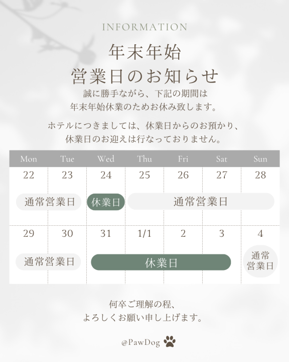 ☆年末年始営業日について☆をご確認いただけますと幸いです。